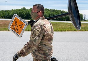 The Configured Air Load Building Tool scans cargo at the 436th Aerial Port Squadron on Dover Air Force Base, Delaware, April 8, 2022. The system was developed as part of the "Aerial Port of the Future" initiative to maximize pallet space utilization. (U.S. Air Force photo by Master Sgt. Chuck