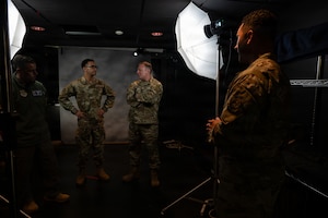 436th Airlift Wing leadership discuss their experience during the Dover Duties immersion tour on Dover Air Force Base, Delaware, Dec. 19, 2025. This hands-on experience provided insight into daily public affairs responsibilities. “It was really cool to see another job’s perspective and how they